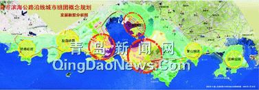 兩點一環(huán):以膠州灣東岸為主城,西岸為輔城,環(huán)膠州灣沿海為發(fā)展組團,形成“兩點一環(huán)”的發(fā)展態(tài)勢。 |